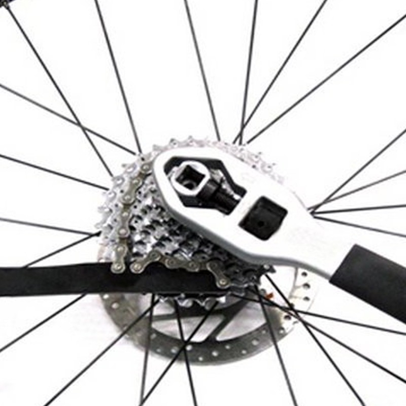 En complément d’un fouet à chaîne, cet outil vous permet de démonter votre cassette sur la roue de votre vélo. Cet outil s’utilise avec une clef à cliquet ou une clef de 24 mm.