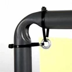 Un système de deux feuilles en plastique transparent mises dos à dos avec œillets, entre lesquelles une affiche (votre publicité) est insérée par le haut et maintenu par des colliers de type RYLSAN sont livrés au nombres de 12 pièces.