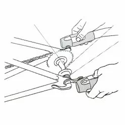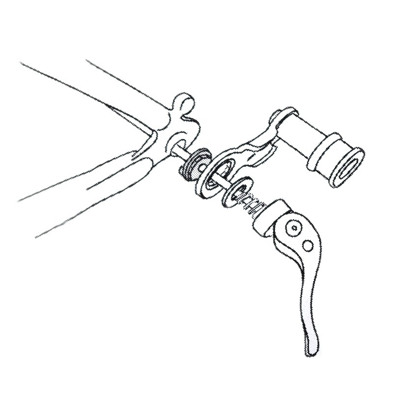 Avec ce type de fixation pour remorque monoporter, il n’est pas nécessaire de changer l’axe de la roue puisque la fixation s’installe de chaque coté du cadre du vélo, une fois mis en place, les deux bras de la remorque weber viennent se positionner sur les embouts noir.