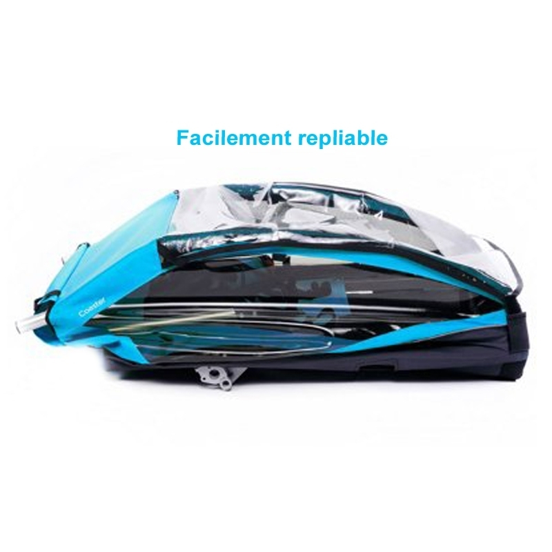 Son cadre fabriqué en aluminium et surmonté par une toile étanche pour les faibles pluies, la remorque est destinée aux transports de 2 jeunes enfants pour un poids maxi de 45 kg. La remorque Chariot Coaster offre de nombreux avantages tels que des sièges confortables, un protège soleil, vent et pluie ainsi qu’un guidon adaptable sur différentes inclinaisons.