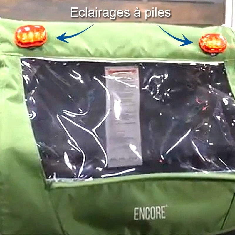 - Visibilité avant et arrière assurée par des matériaux réfléchissants et réflecteurs