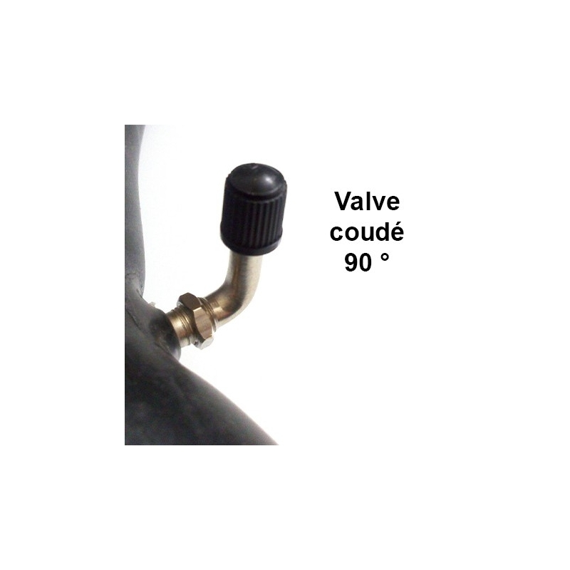 La valve coudée à 90° Schrader (grosse valve) permet un gonflage plus facile.
