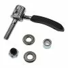 Cette fixation se fixe sur l’axe de la roue arrière et permet d’accrocher le bras de certains modèles de remorque vélo enfants.
